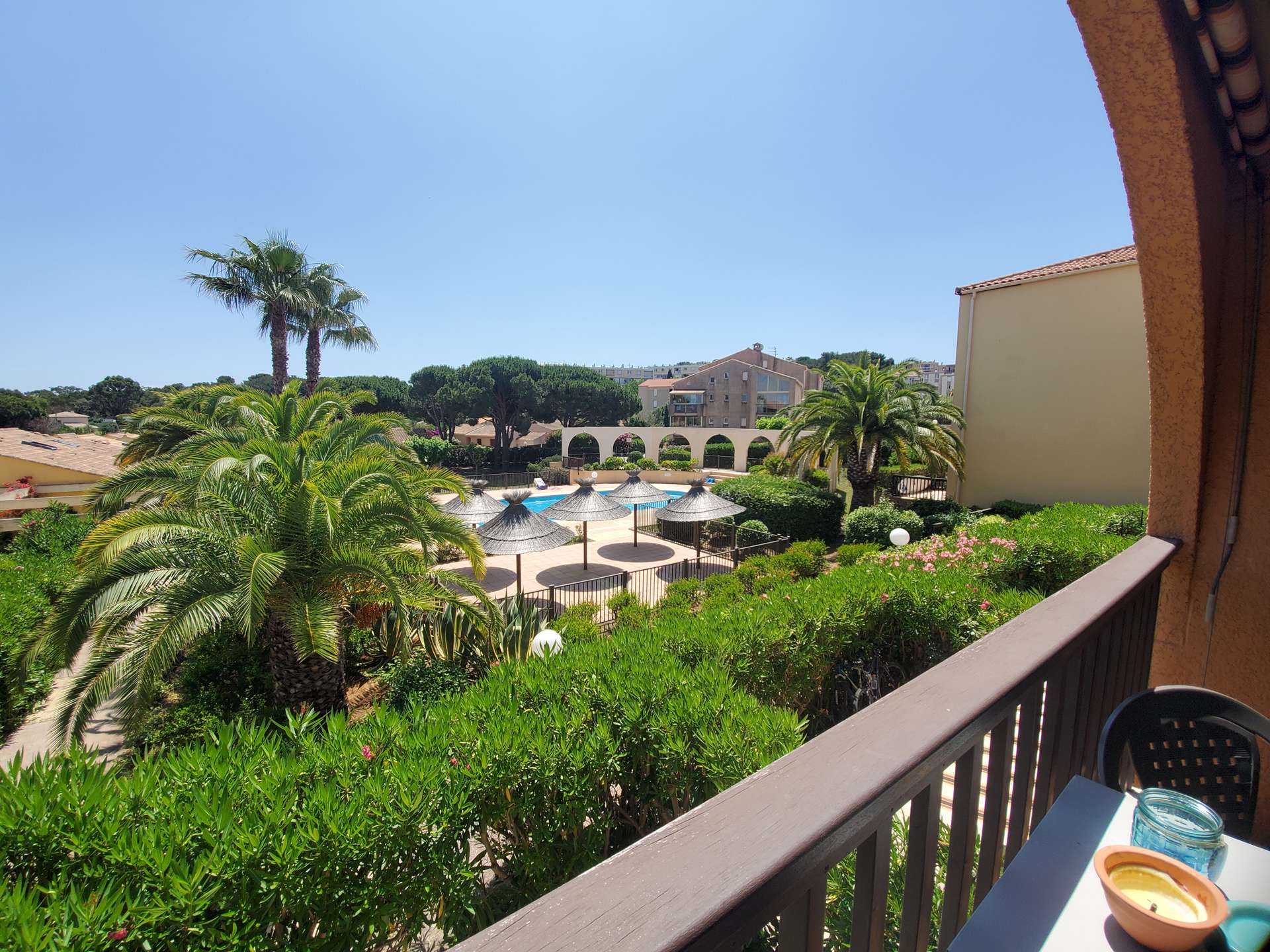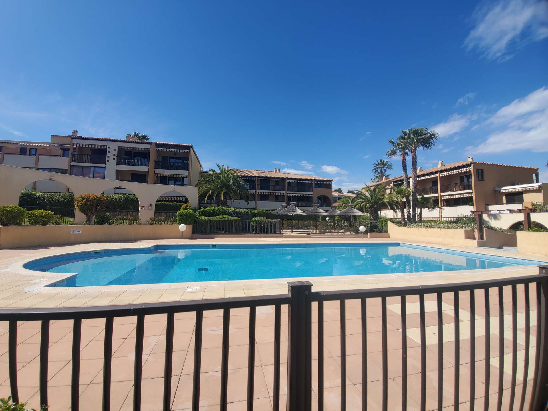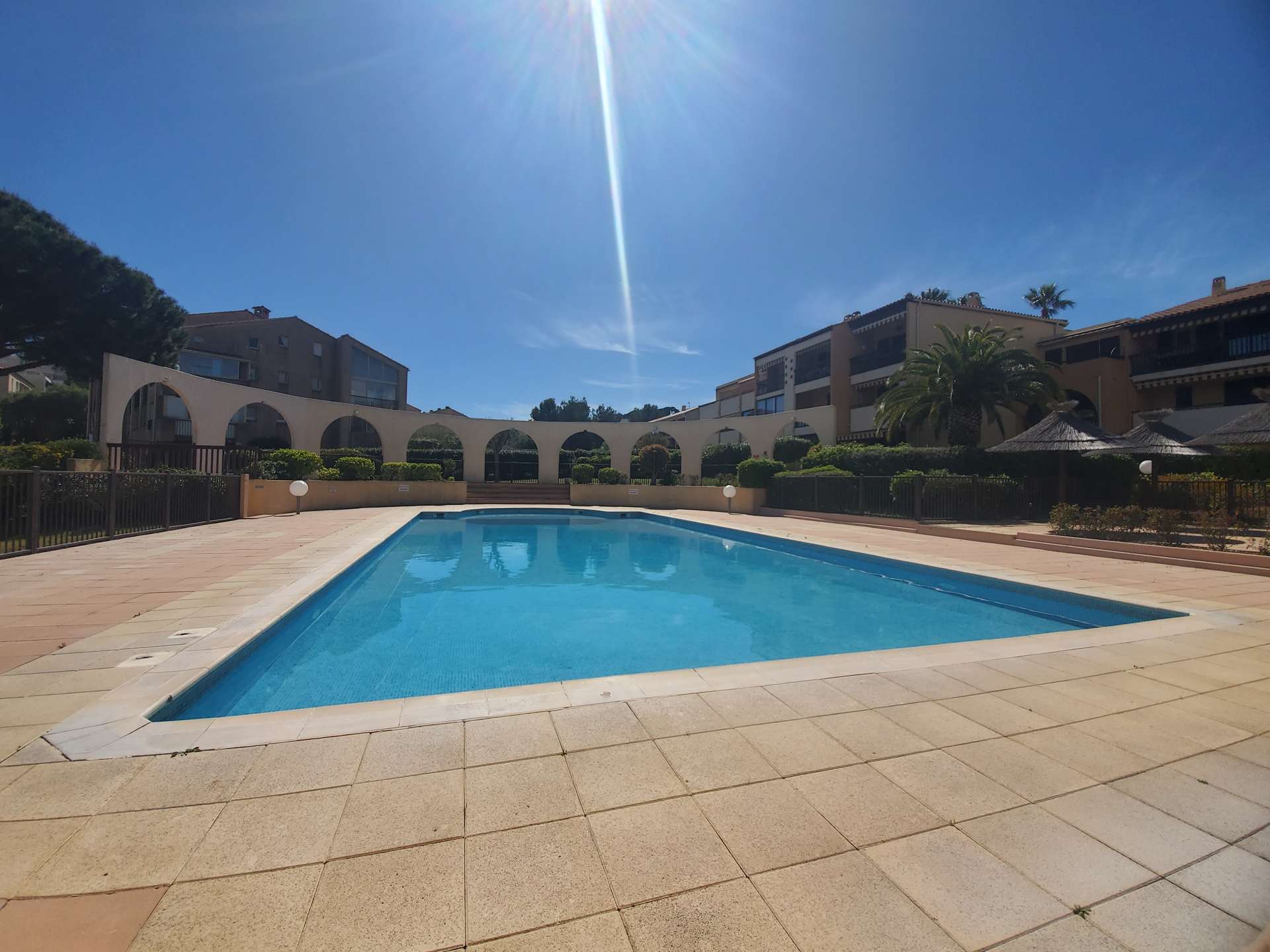Studio cabine pour 4 personnes au 1er étage dans une résidence avec piscine à 5 mn du village de Giens sur la Presqu'île de Giens. Parking privé.