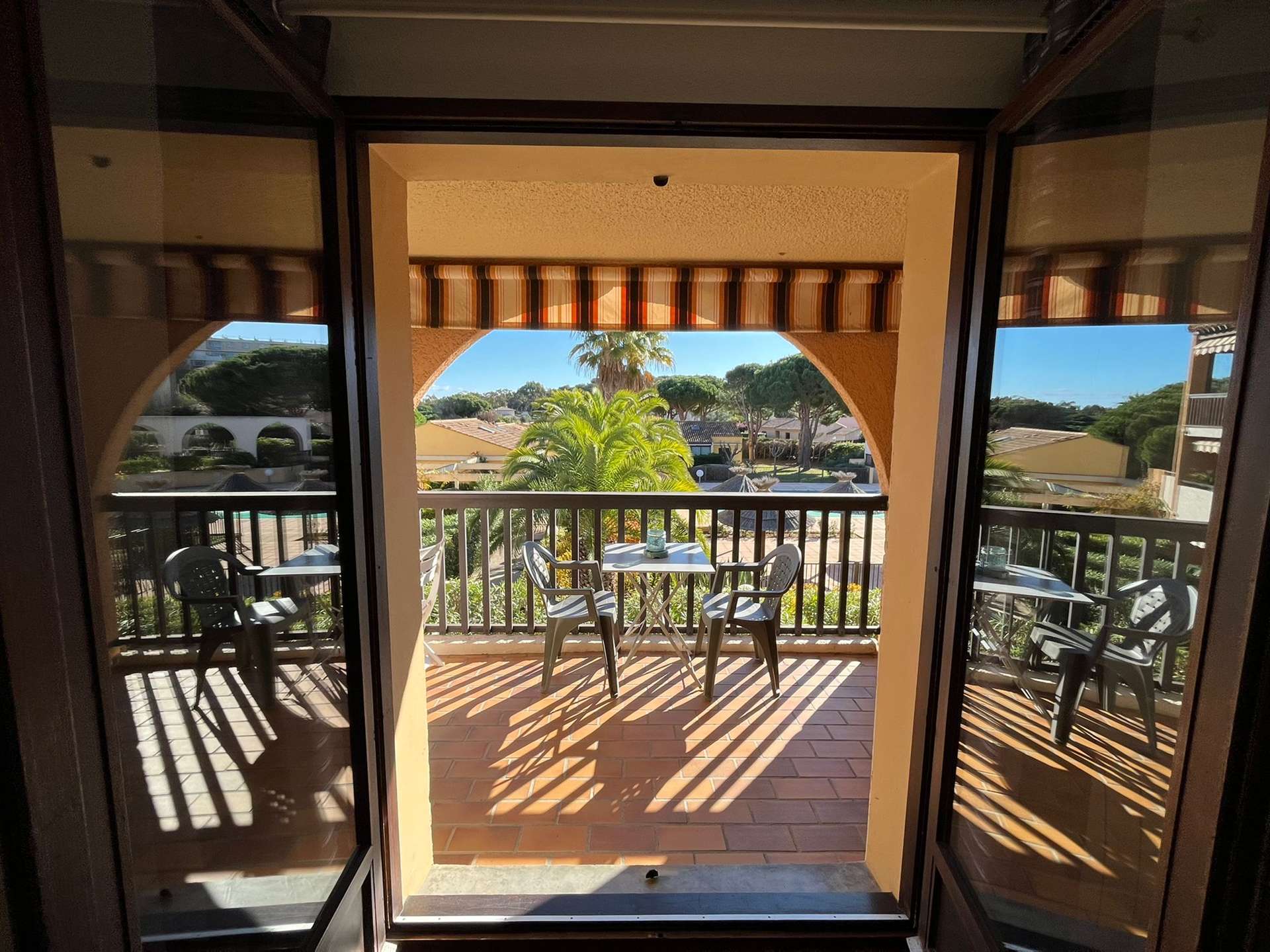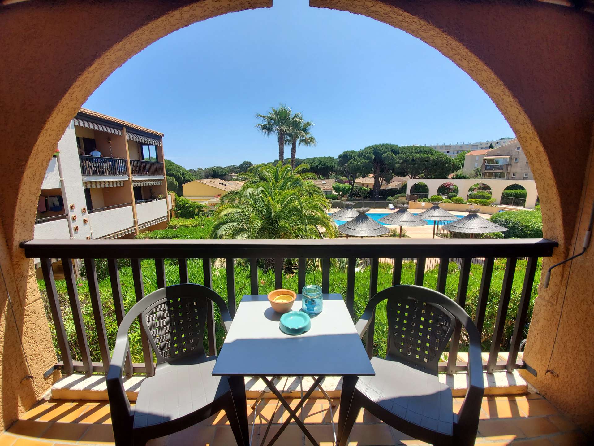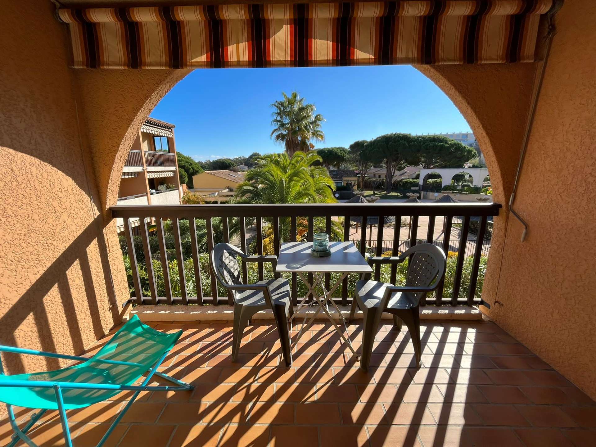 Studio cabine pour 4 personnes au 1er étage dans une résidence avec piscine à 5 mn du village de Giens sur la Presqu'île de Giens. Parking privé.
