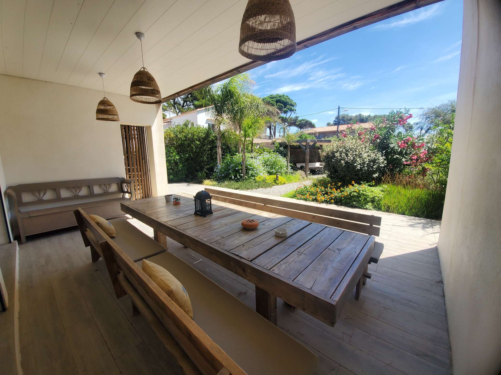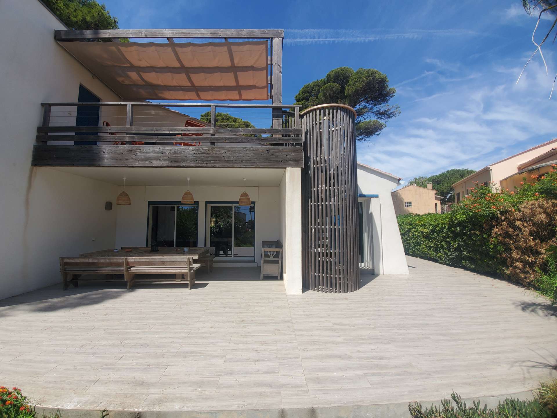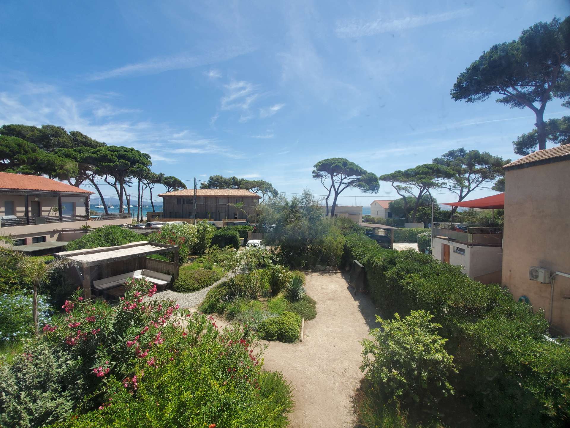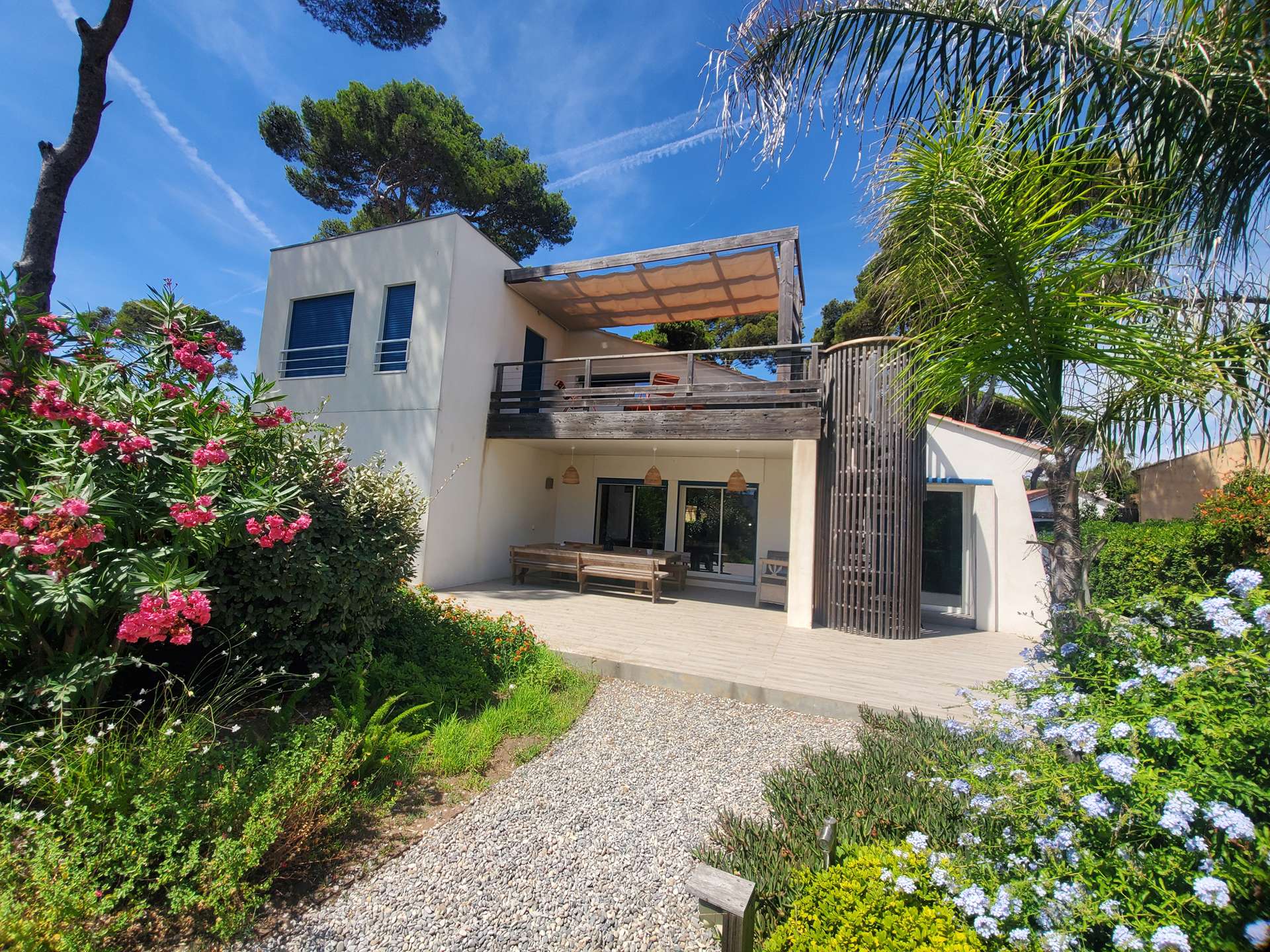 Villa climatisée pour 14 personnes sur un grand terrain arboré à 50 m de la Plage sur la Presqu'île de Giens. A 5 mn du port de plaisance de Hyères. Vue mer de l'étage. Stationnement. Wifi & Climatisation.