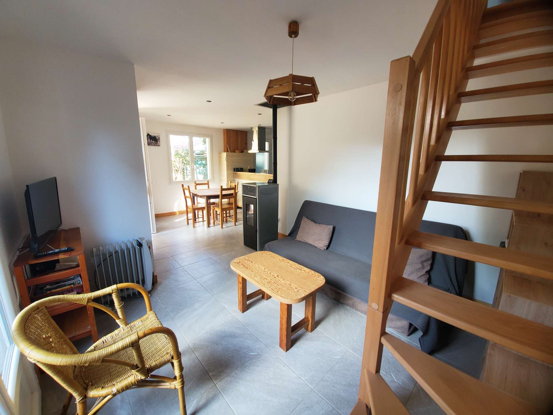 A l'étage, une mezzanine, 2 chambres et un WC indépendant.
