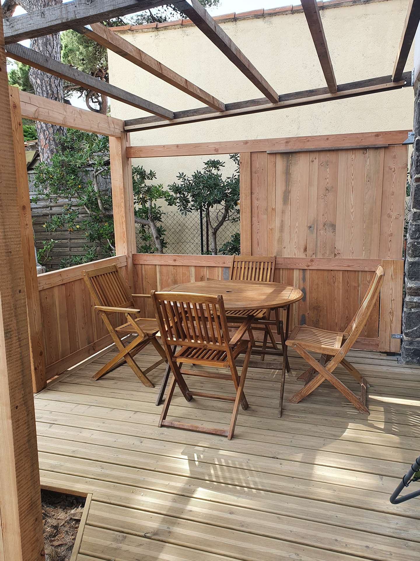 Terrasse, jardin clos et parking privatif fermé.