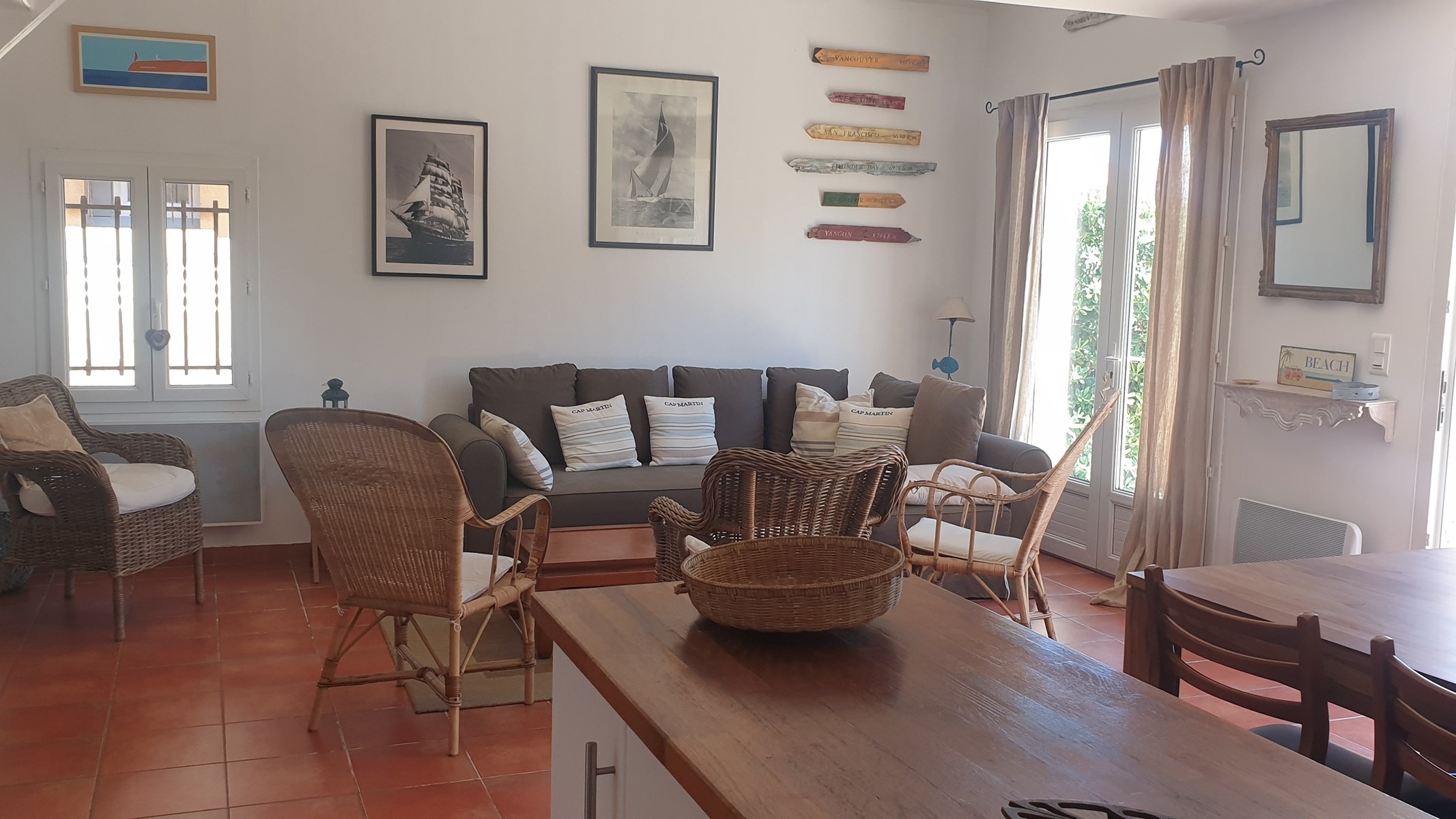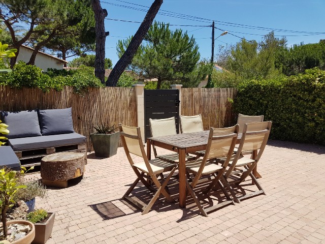 Maison de vacances de type 4 pour 6/8 personnes sous la pinède et à 150 m de la plage de la Capte et à 500m des commerces. Stationnement dans la rue. Wifi.