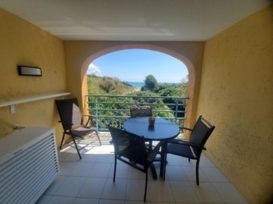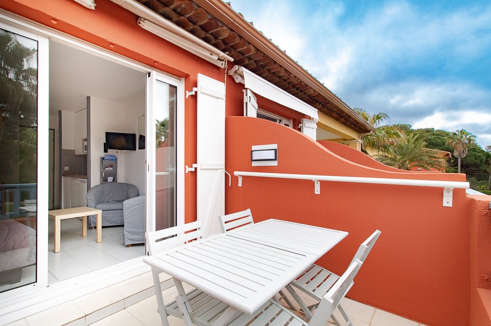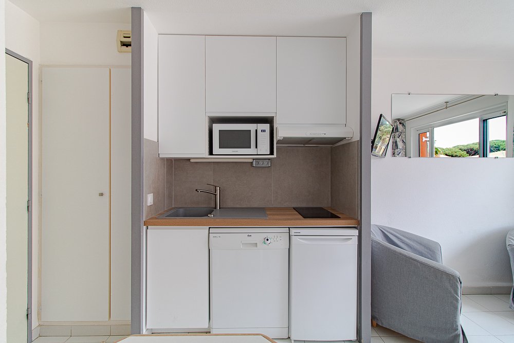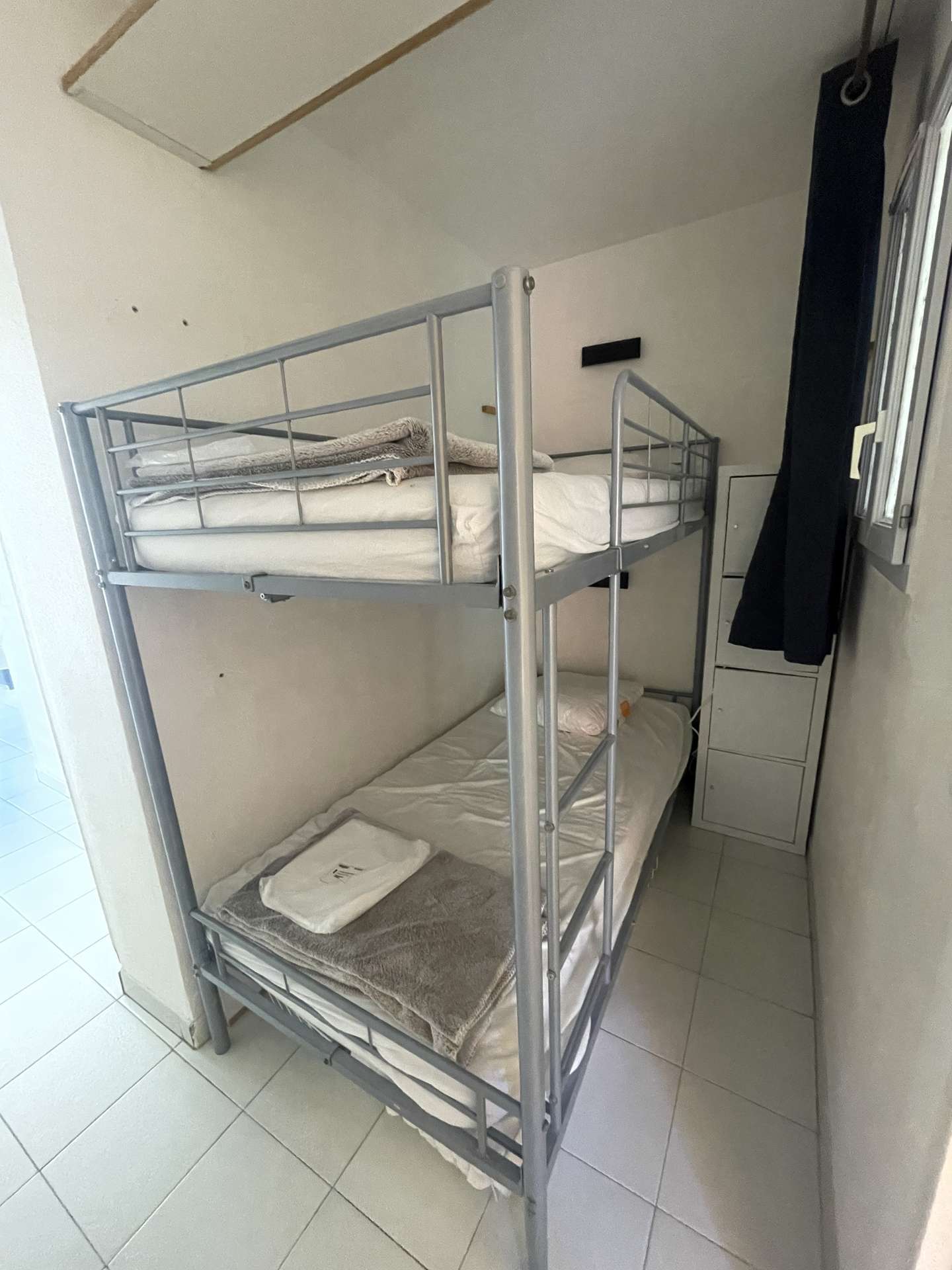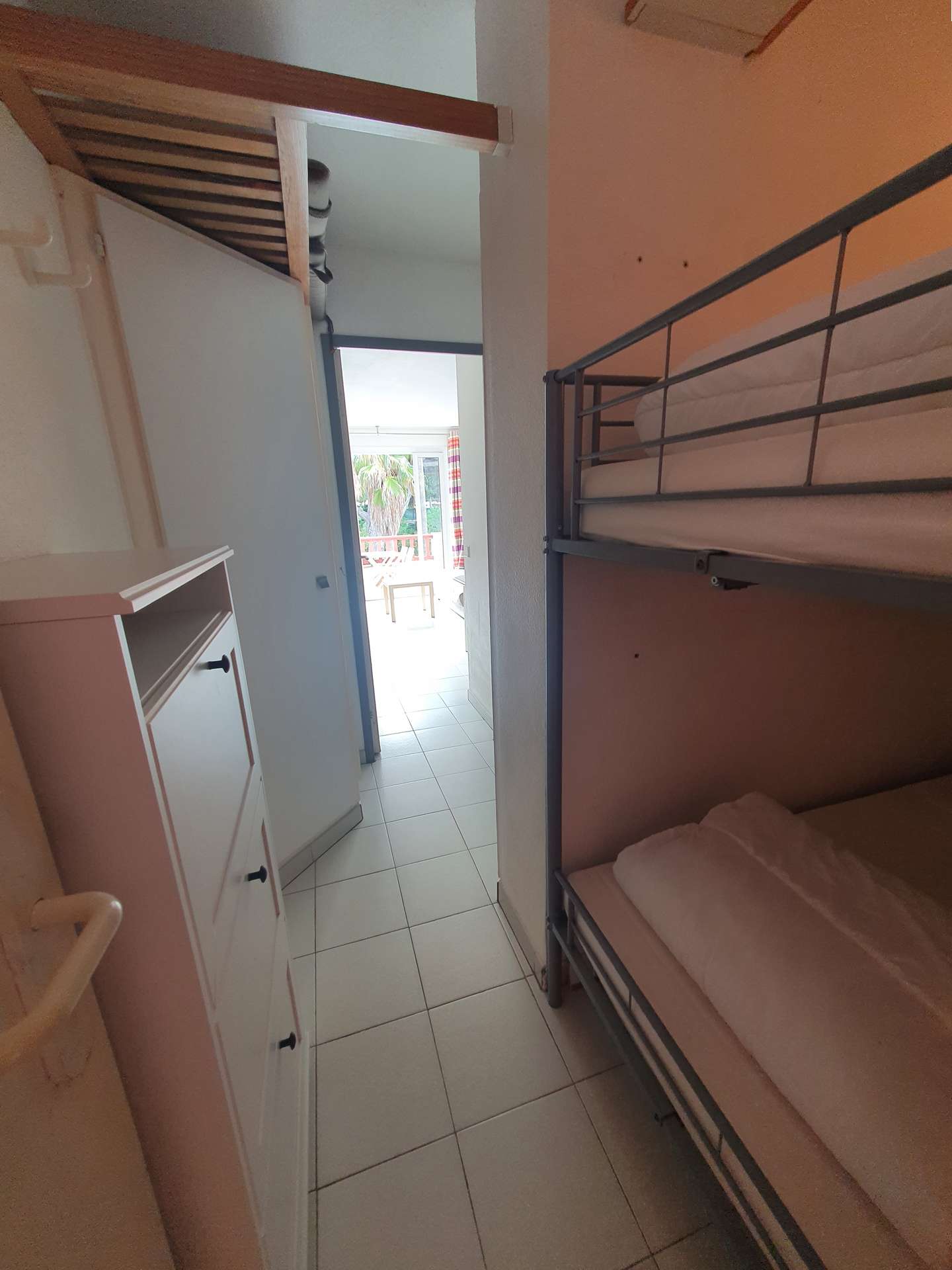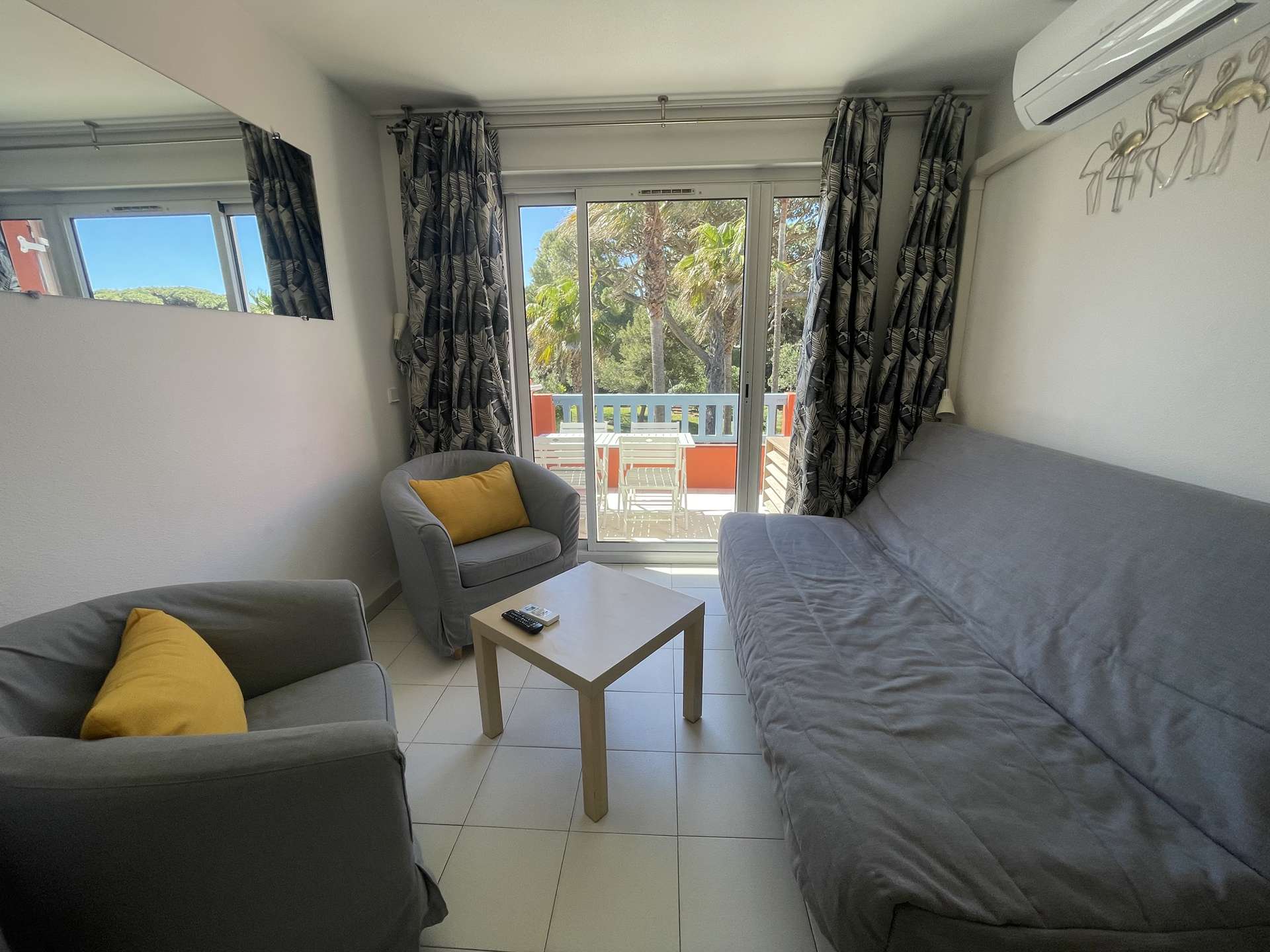 Studio Cabine au 2ème et dernier étage pour 4 personnes dans une résidence les pieds dans l'eau, accès direct et privé à la plage de la Badine sur la Presqu'île de Giens. Résidence avec piscine, aires de jeux et restaurant d'été. Laverie à pièces et parking. Wifi (payant) & climatisation dans le séjour.