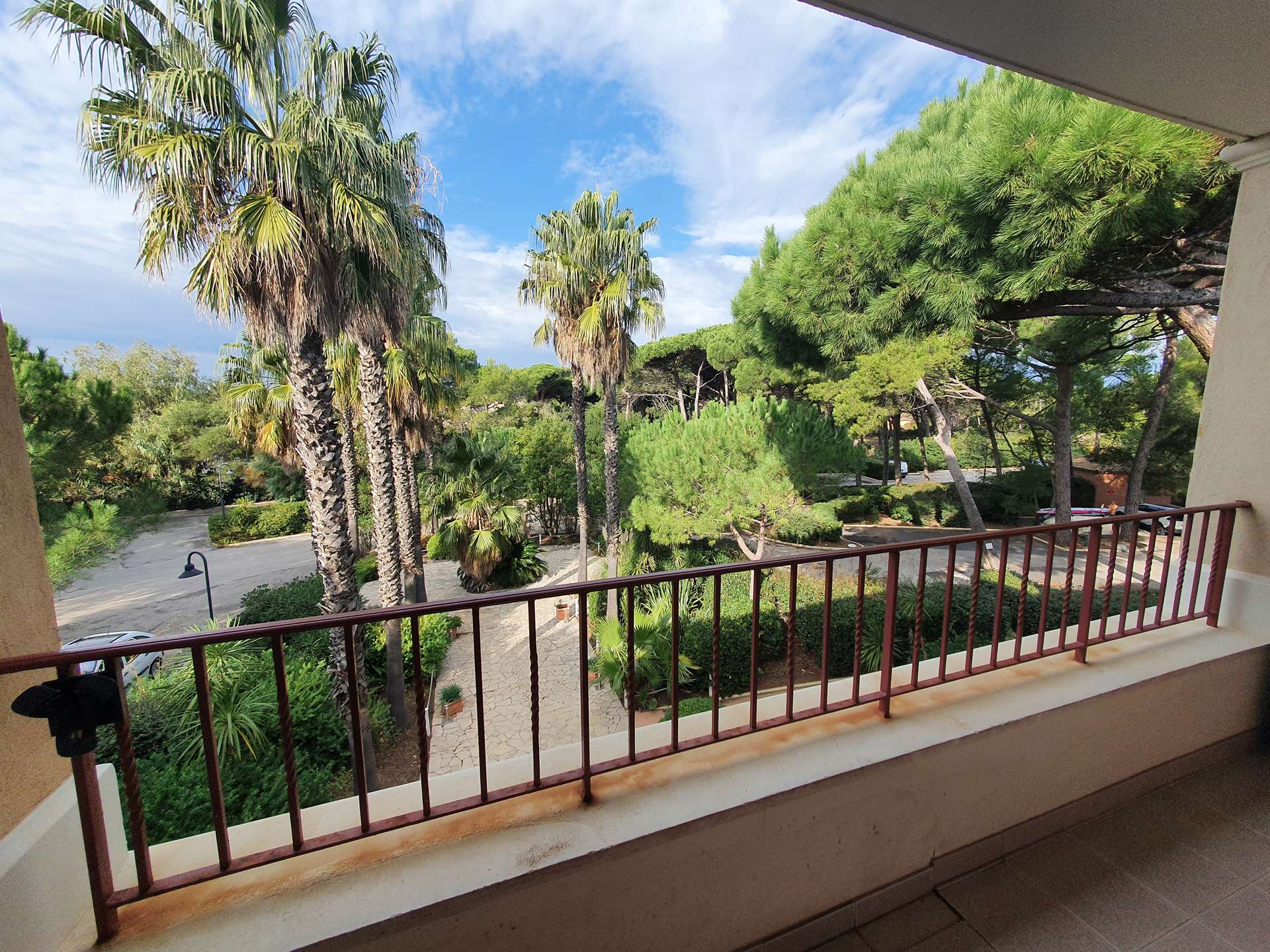 Résidence de la Pinède : Appartement T3 pour 6 personnes au deuxième et dernier étage sans ascenseur dans une résidence les pieds dans l'eau, accès direct et privé à la plage de la Badine sur la Presqu'île de Giens. Résidence avec piscine, aires de jeux et restaurant d'été. Laverie à pièces et parking. Wifi gratuit.