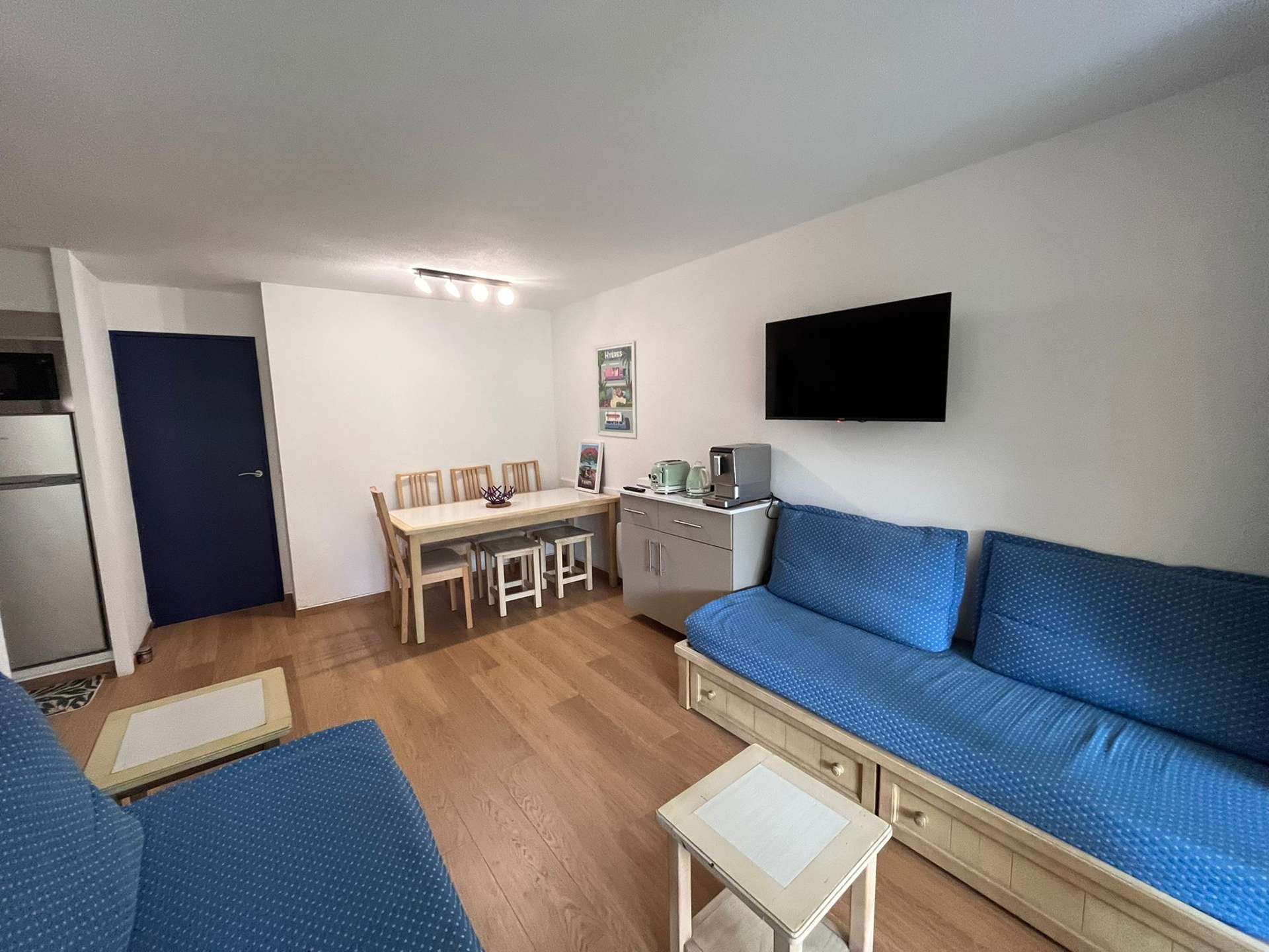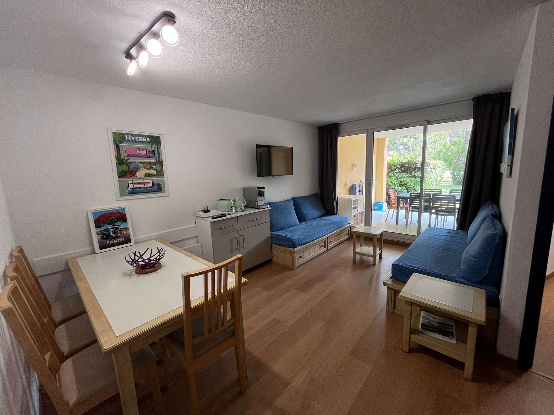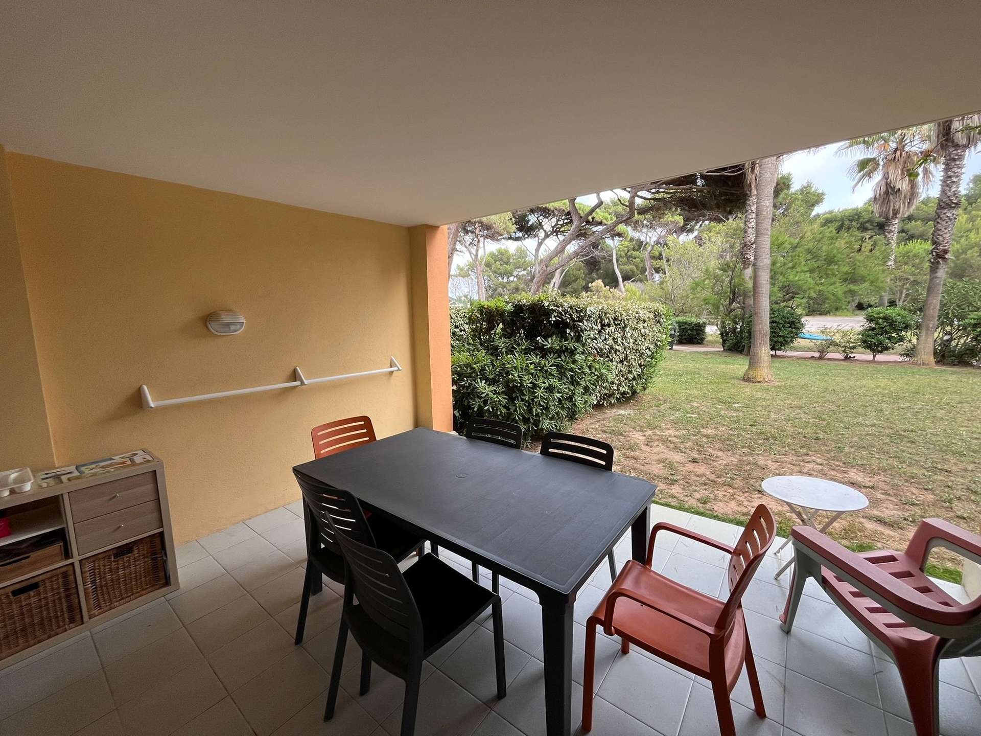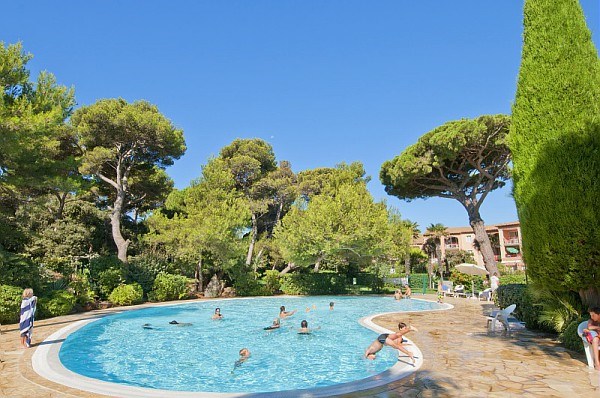 Résidence de la Pinède : Appartement T3 en rez de jardin pour 6 personnes dans une résidence les pieds dans l'eau, accès direct et privé à la plage de la Badine sur la Presqu'île de Giens. Résidence avec piscine, aires de jeux et restaurant d'été. Laverie à pièces et parking. Wifi (payant).