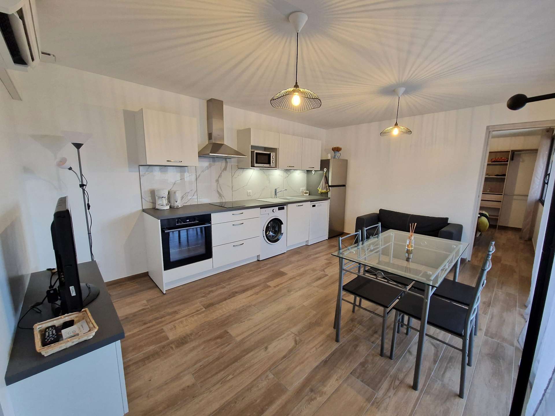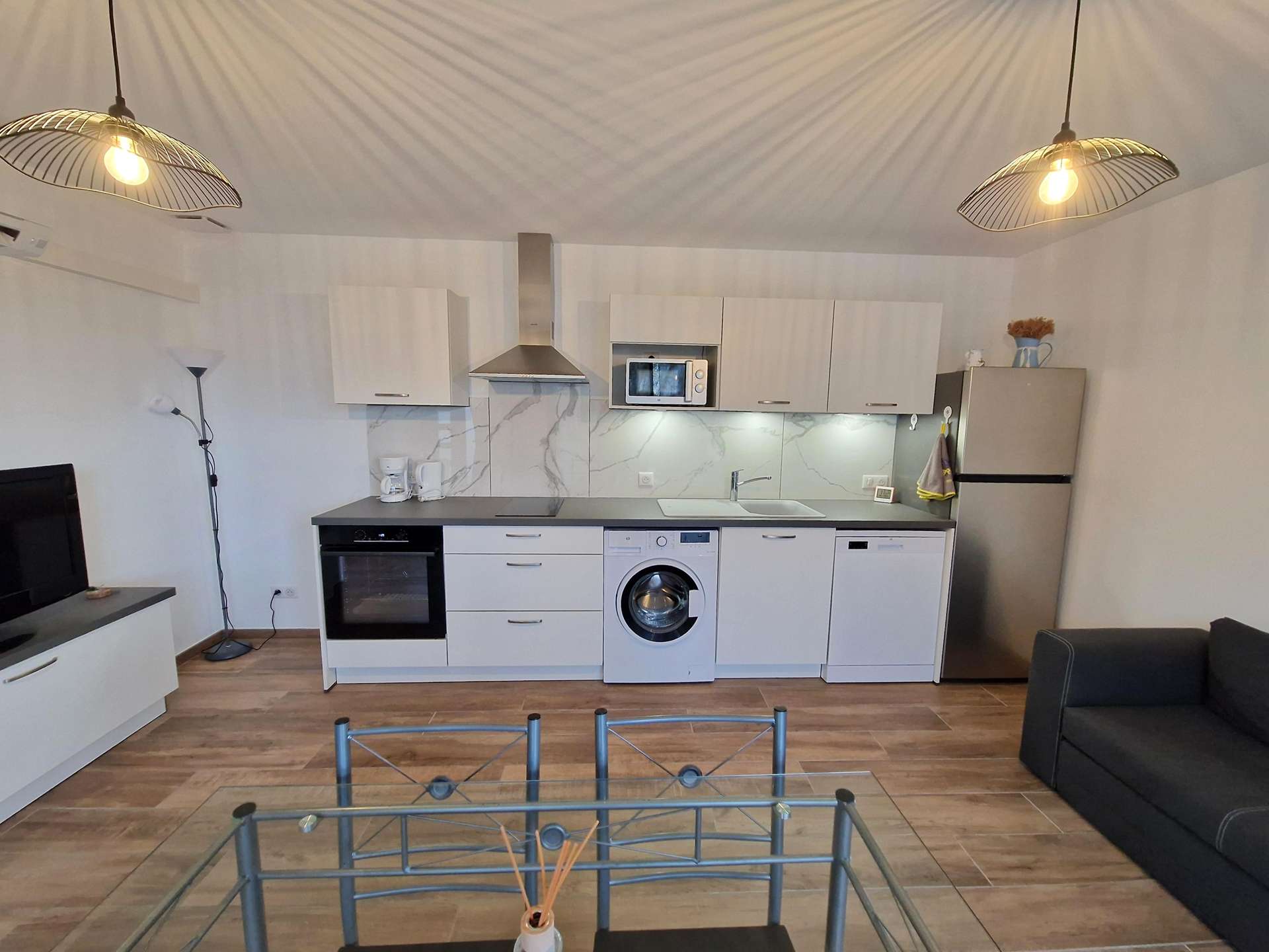 L'appartement dispose d'une chambre, d'un séjour/cuisine, une salle d'eau avec WC. D'une terrasse donnant sur la rue avec un "aperçu vue mer".