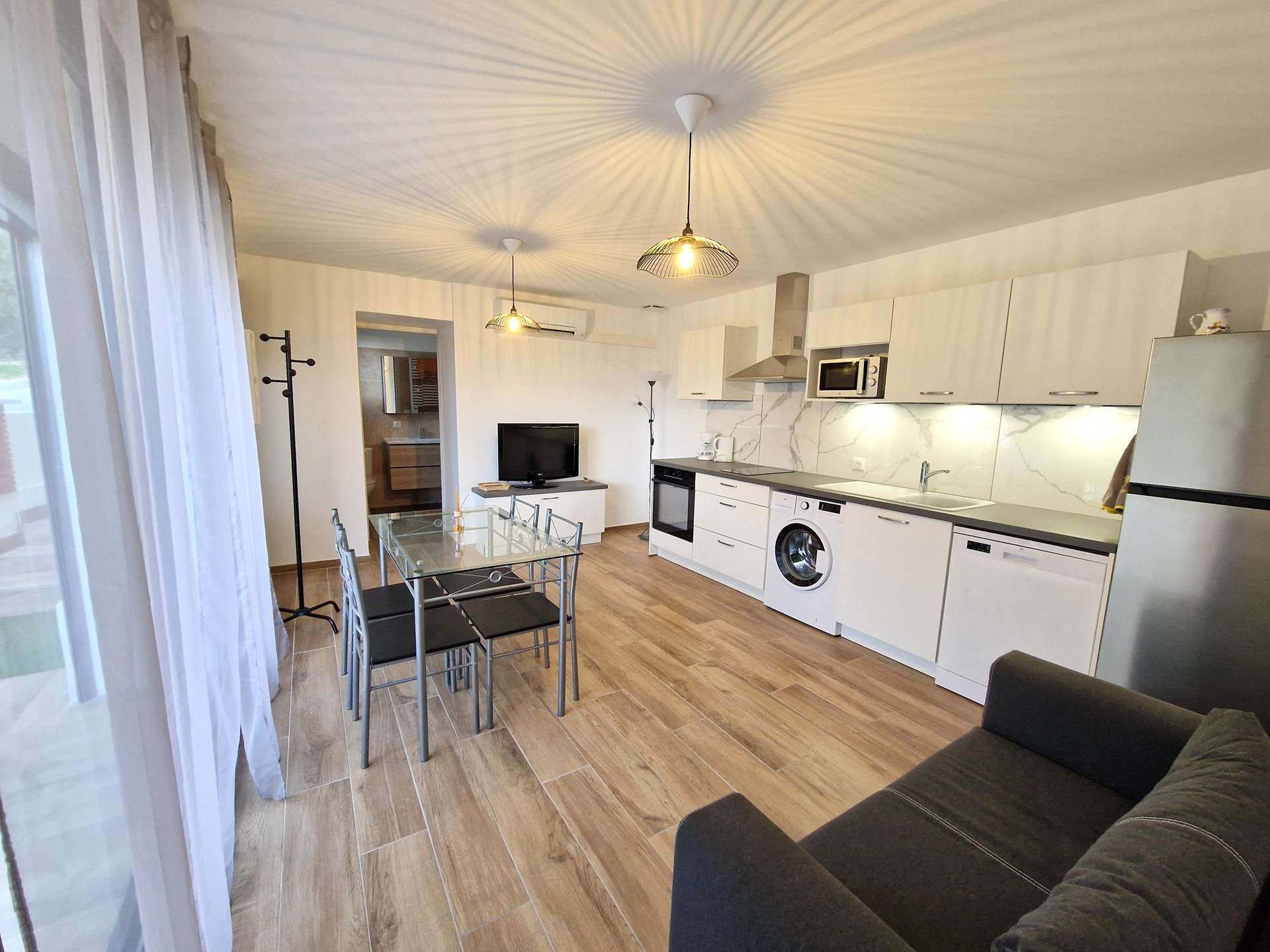 Sur Giens, Appartement T2 pour 2 personnes. Climatisation dans le séjour. Wifi & stationnement dans la rue.