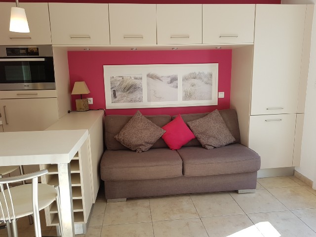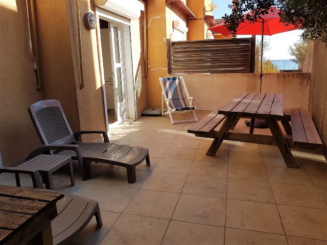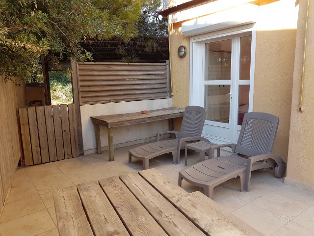 Appartement T2 climatisé pour 4 personnes en rez de chaussée, situé dans une résidence les pieds dans l'eau à la Capte sur la Presqu'île de Giens. Plage de sable à 30 m, commerces du village à 100 m. Stationnement libre dans la rue. Wifi & Climatisation dans le séjour.