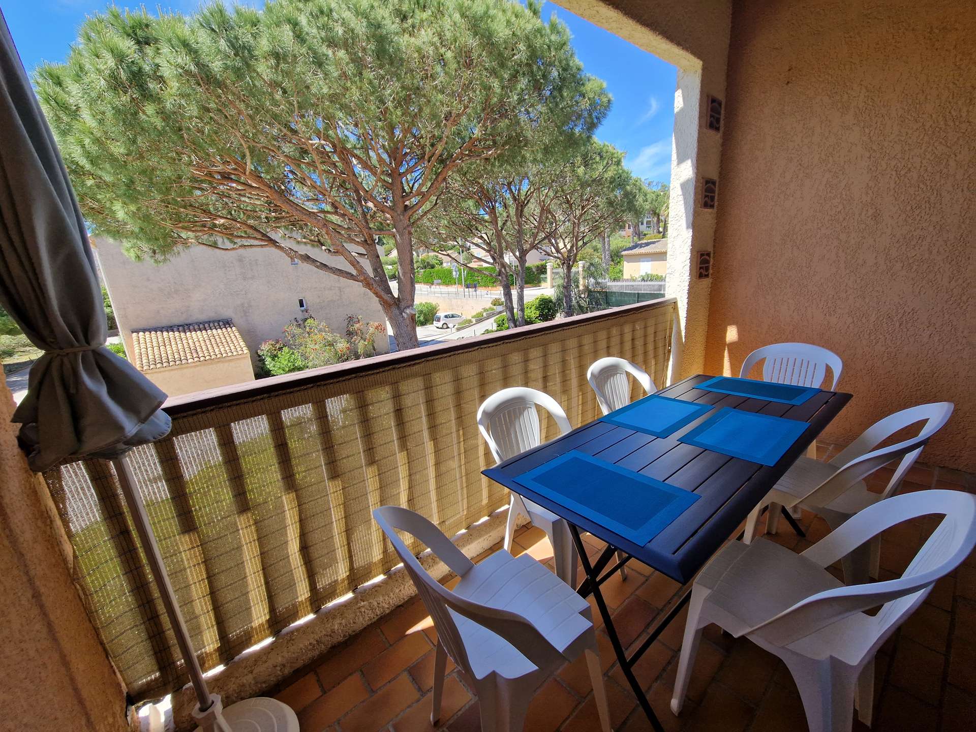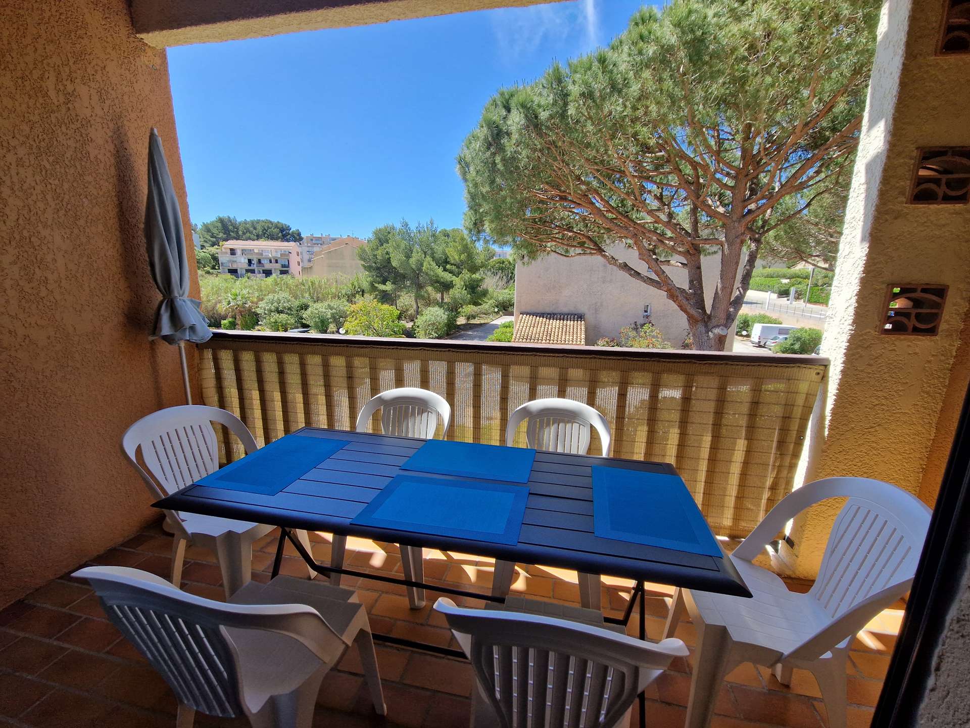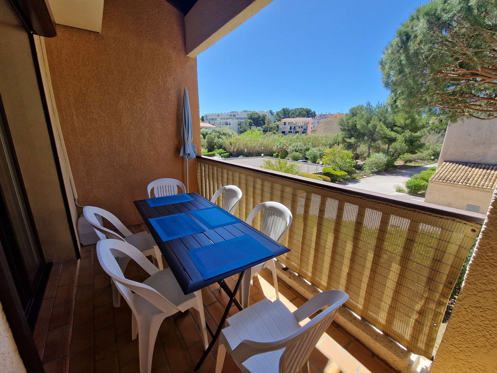 Appartement T2 + Mezzanine moderne et climatisé pour 4/6 personnes avec une grande mezzanine sous combles au dernier étage dans une résidence avec piscine. Situé à 500m du village de Giens sur la Presqu'île. Parking privé. Climatisation dans la pièce principale.