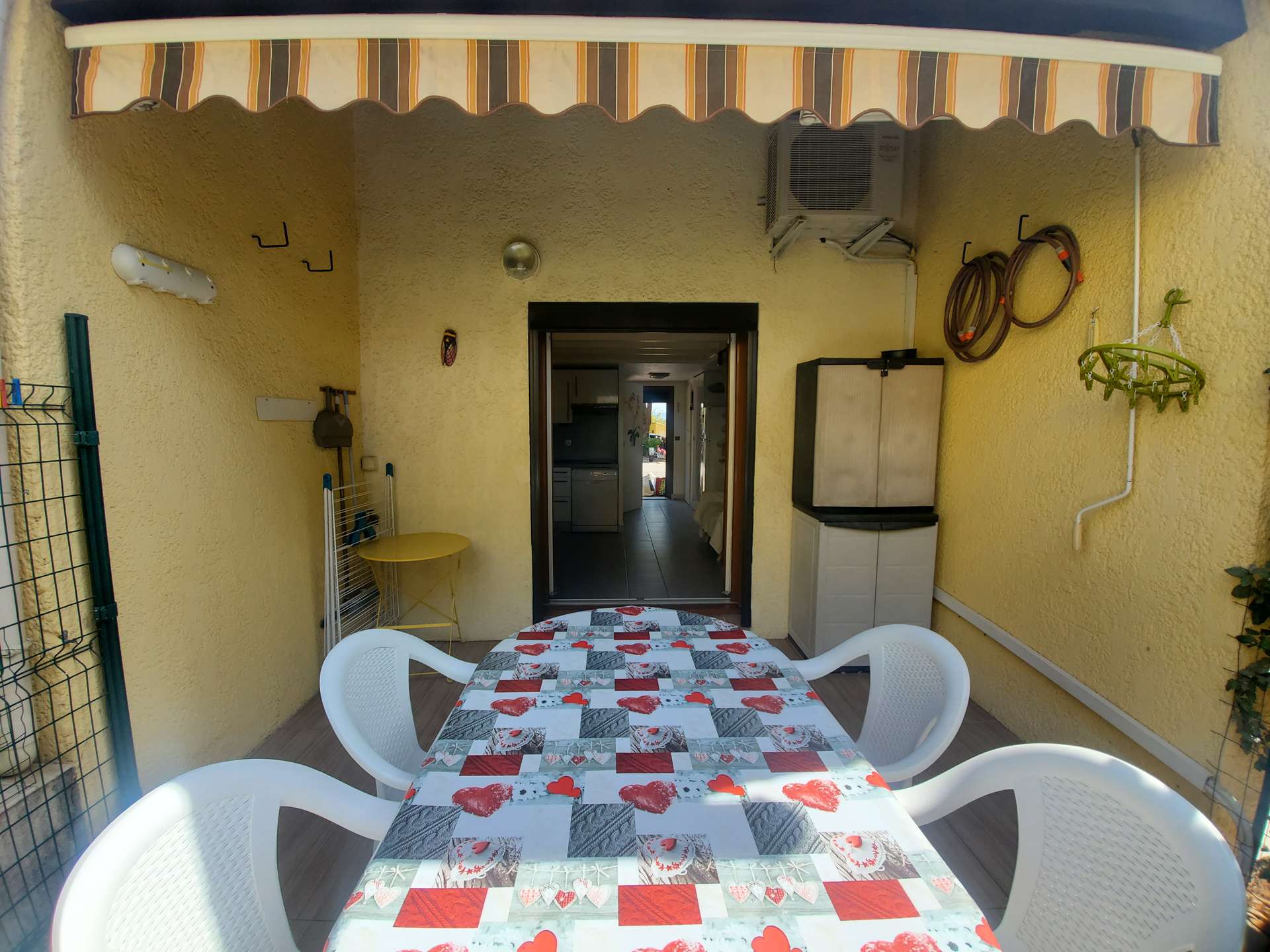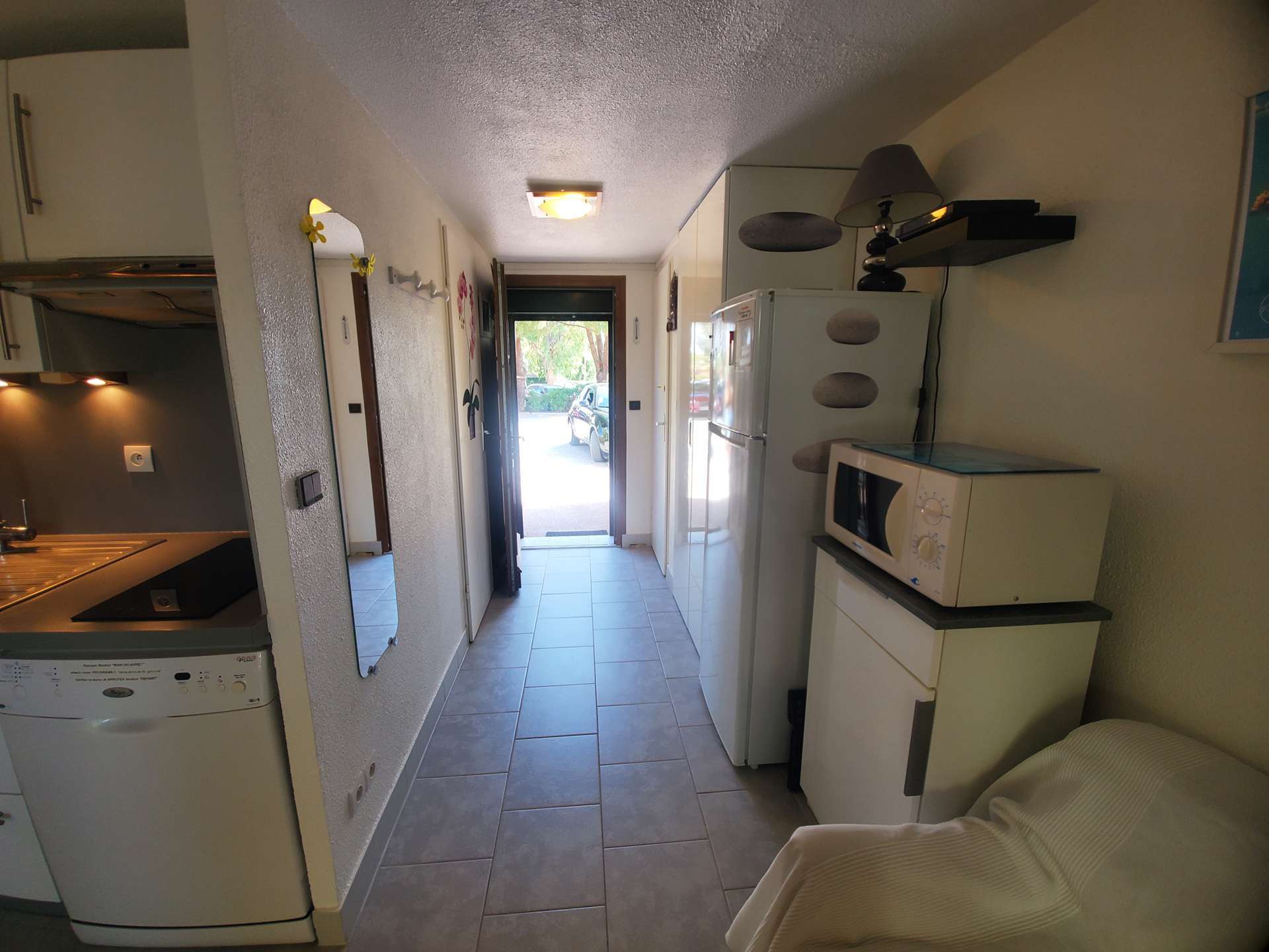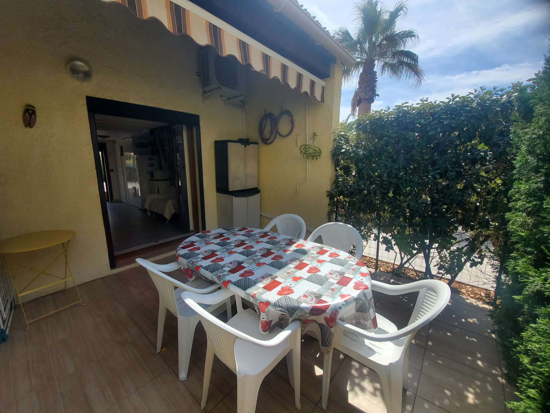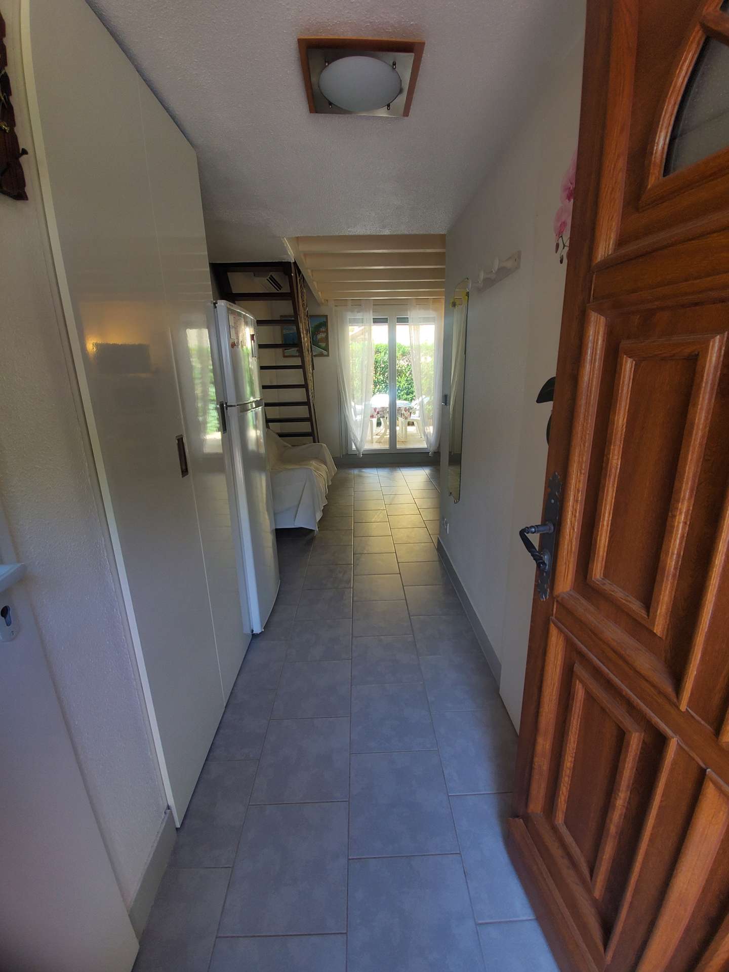 Maisonnette climatisée de type 2 + Mezzanine sur deux niveaux pour 4 personnes dans une résidence avec piscine à 5 mn du village de Giens sur la Presqu'île de Giens. Wifi. Parking privé. Climatisation dans le séjour.