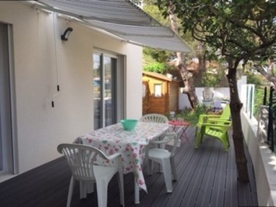 Appartement T3 en rez de chaussée d'une maison de vacances (1er étage non occupé), dans une petite copropriété de 2 lots proche du village de la Capte et des plages. Grande terrasse à usage privatif. Climatisation & Wifi. Stationnement à l'intérieur / extérieur.