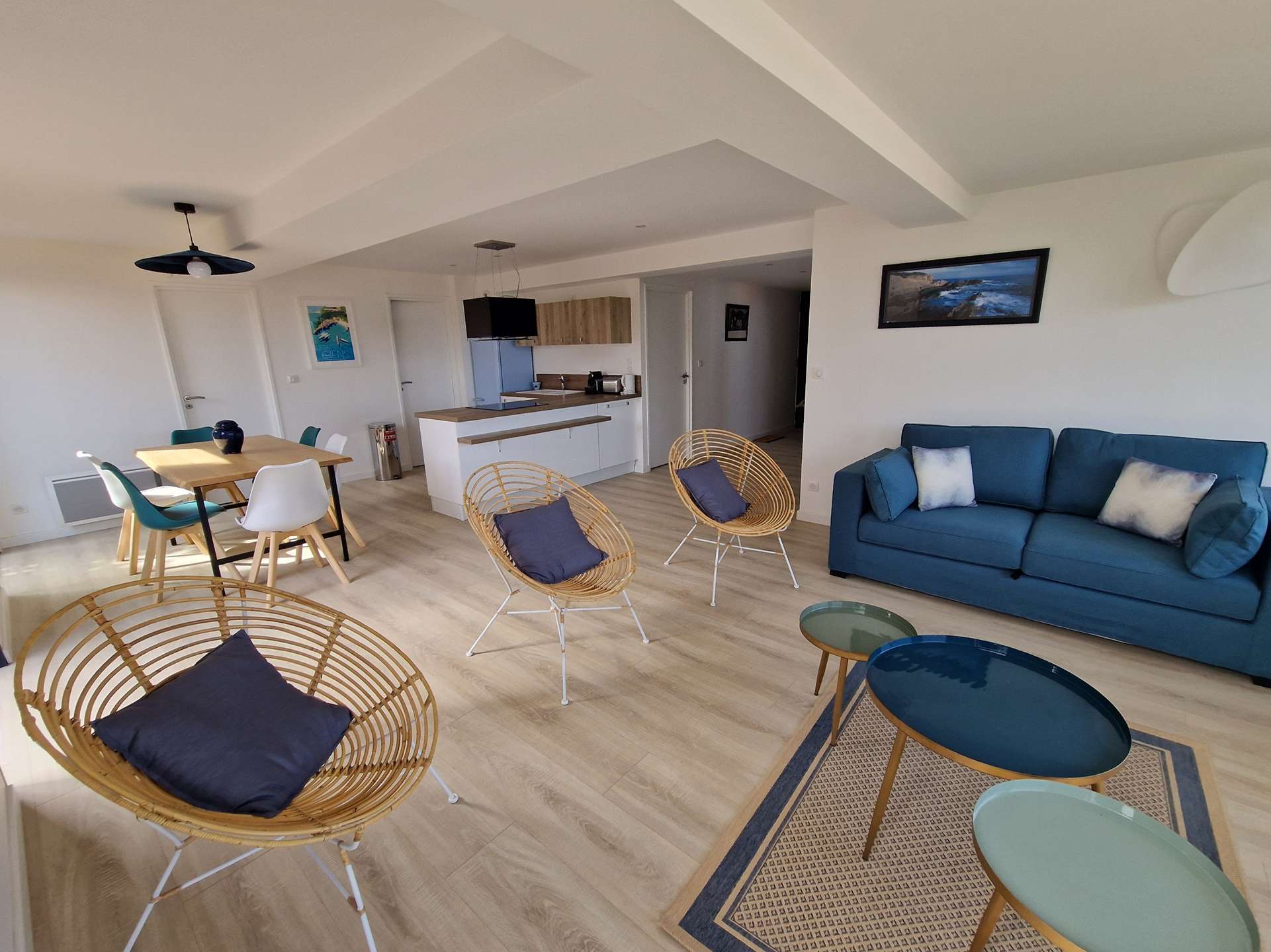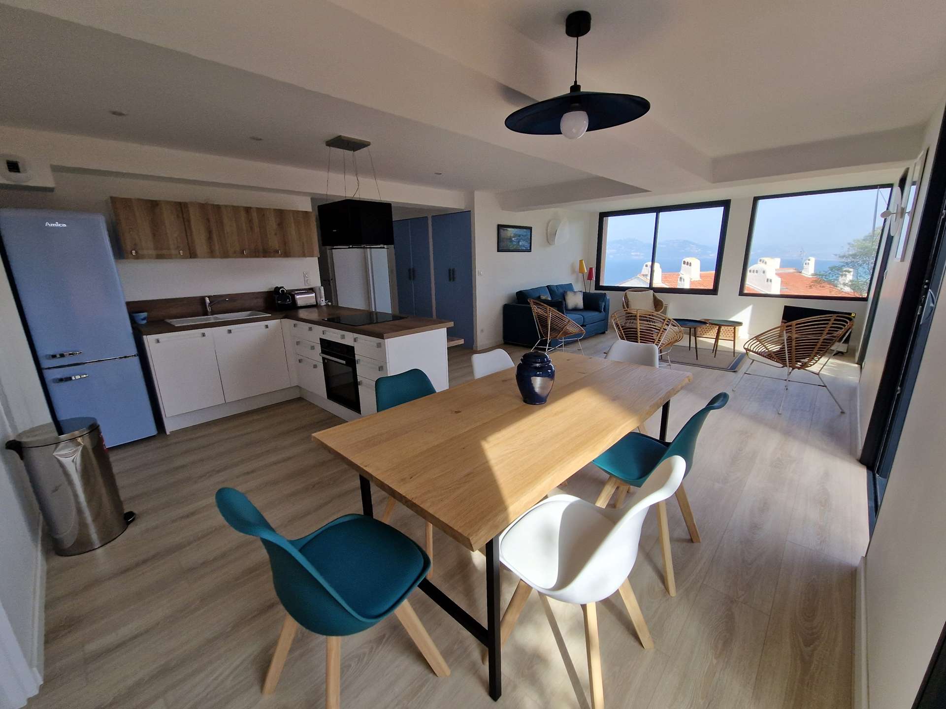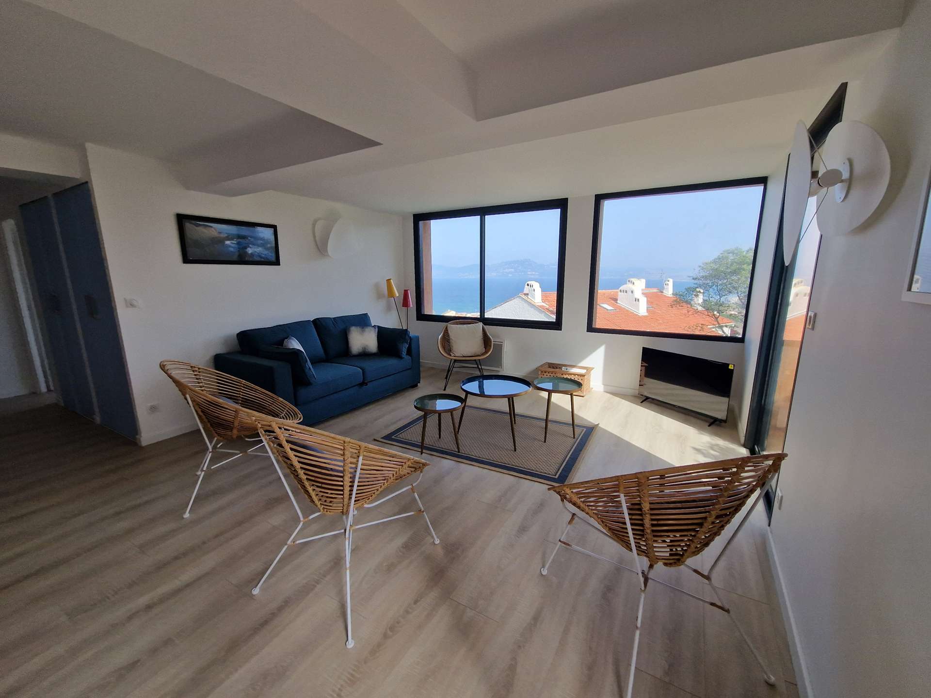 Séjour et cuisine avec très belle vue mer !! 2 Chambres dont une avec salle d'eau, une alcôve, un WC, Salle d'eau, terrasse.