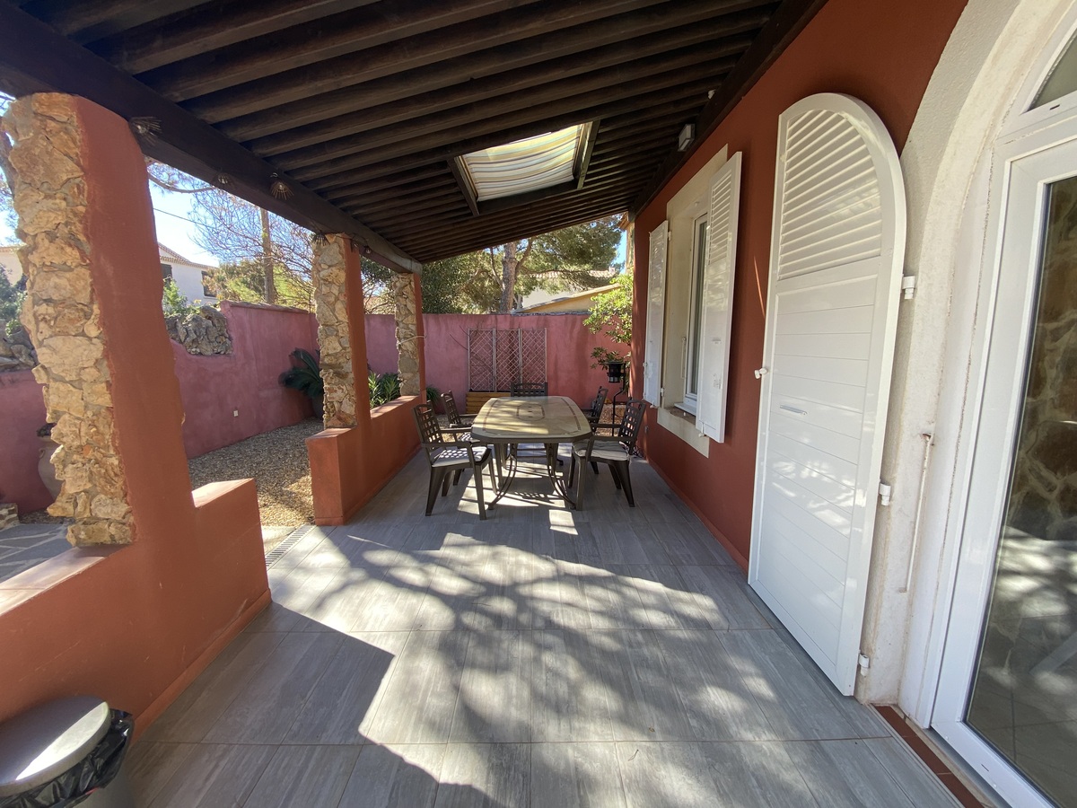 Charmante maison de plain-pied nichée sous de magnifiques pins parasols, située à La Capte, en pleine propriété au sein d’une copropriété horizontale de seulement 2 lots (villas dos à dos).