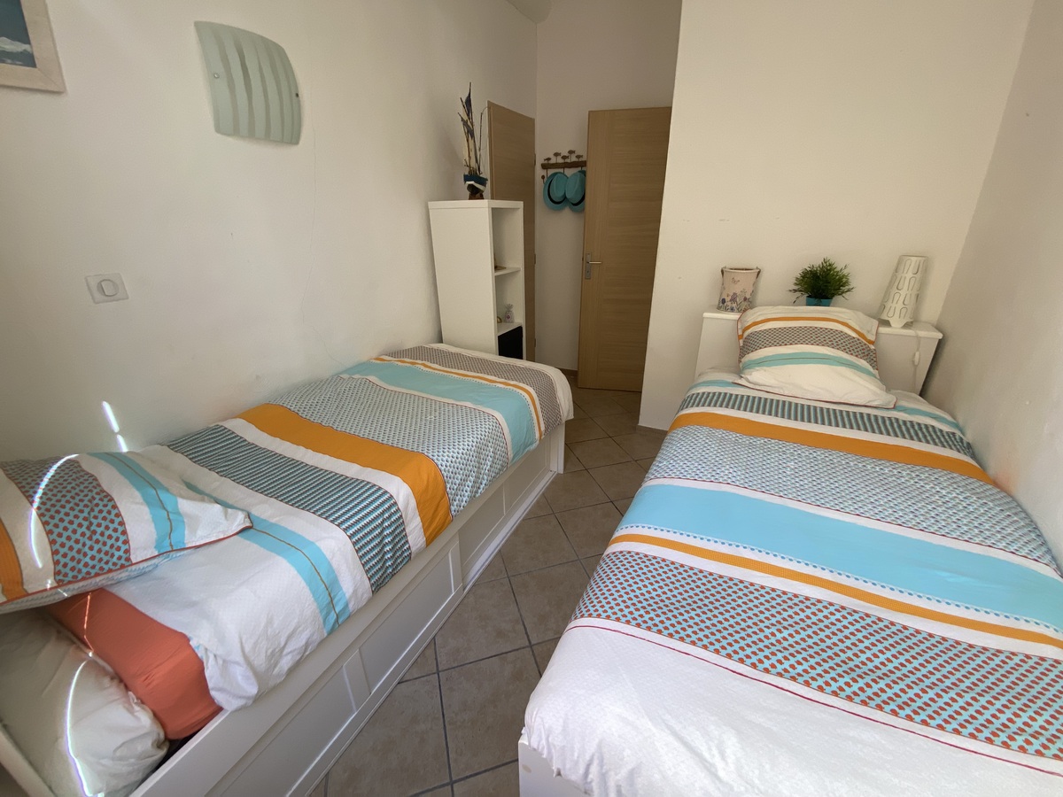 Ce bien se compose de deux chambres confortables et d’un séjour avec cuisine, le tout climatisé pour un confort optimal en toute saison. Vous profiterez également d’une agréable terrasse couverte, idéale pour vos moments de détente en extérieur.